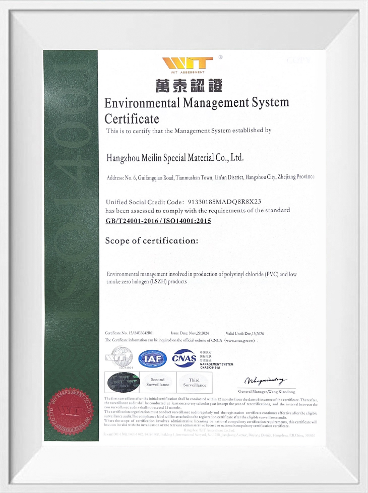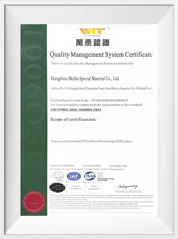 Hangzhou Meilin New Material Technology Co., Ltd. گواهینامه سیستم مدیریت کیفیت IATF 16949:2016 را دریافت کرد.